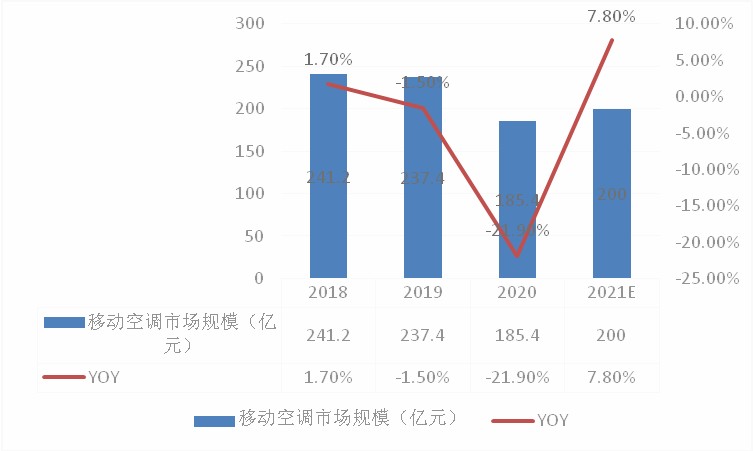 一、2020-2021年我国移动空调行业市场规模