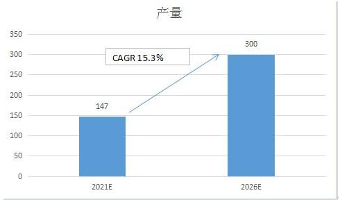 2021-2026年我国BDO产量预测(单位:万吨)