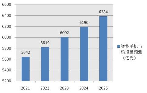 图表:2021-2025年我国智能手机行业市场规模预测(单位:亿元)