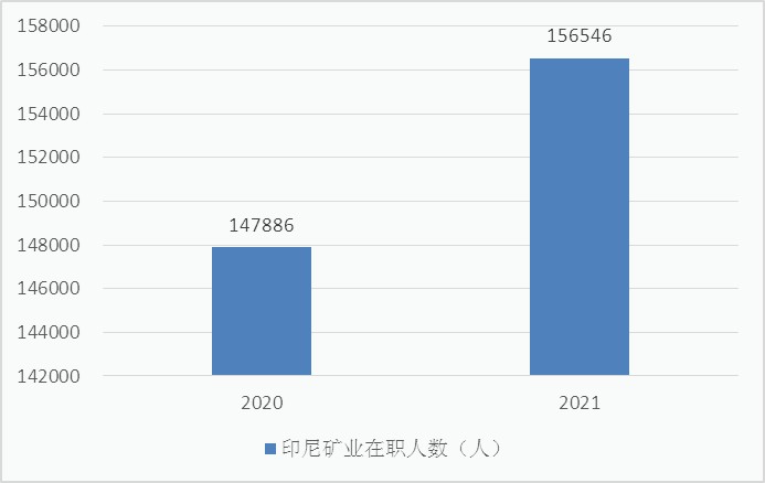 从2020年的矿业从业人数14.7万人增长到2021年的印度尼西亚矿业15.6万从业人员,增长了大约5.8%。