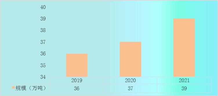 2019-2021年中国abs高胶粉市场供给量由36万吨上升到39万吨。