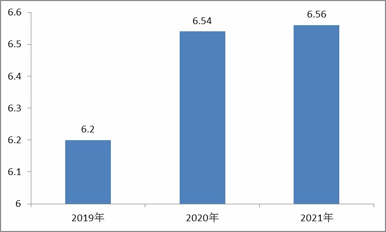 图表:2019-2021年中国手游市场用户规模(单位:亿人)