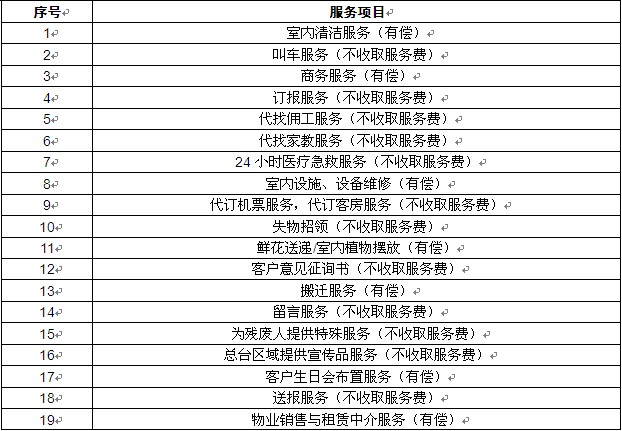 图表:针对客户在生活、休闲的需要及自身实际情况考虑而提供的服务项目