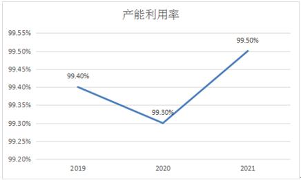 图表:2019-2021年中国皮肤病药物行业产能利用率情况