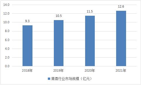 图表:2018-2021年中国清酒行业市场规模(亿元)
