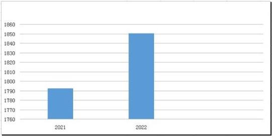 图表:2021-2022年中国成长奶粉行业产量预测(万吨)