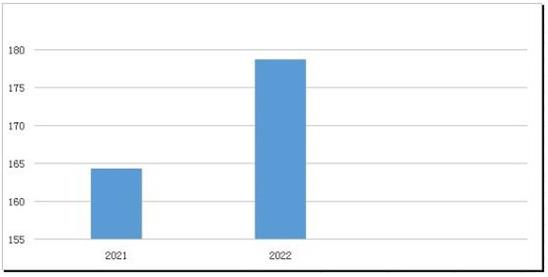 图表:2021-2022年中国成长奶粉行业需求量预测(亿元)