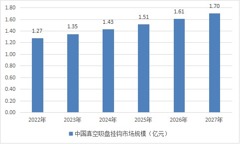 图表:2022-2027年中国真空吸盘挂钩行业市场规模(亿元)