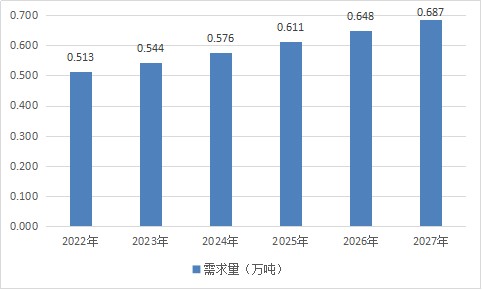 图表:2022-2027年中国真空吸盘挂钩行业需求规模(万吨)