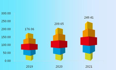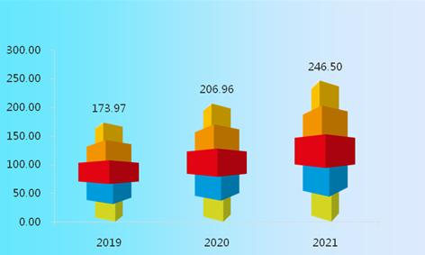 图表:2019-2021年中国服务器市场需求规模(亿美元)