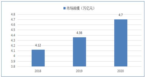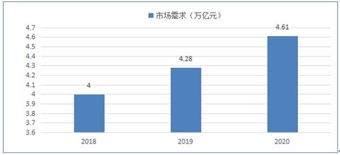 2018-2020年中国配件行业需求规模分别为4.0、4.28、4.61万亿元。