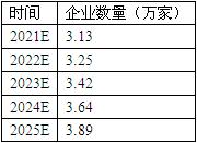 图表:2021-2025年中国电力信息化解决方案提供商企业数量预测
