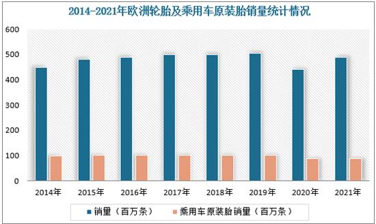 图表:2014-2021年欧洲轮胎及乘用车原装胎销量统计情况