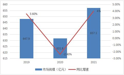 2020年全国受新冠疫情影响,桥梁钢结构工程建设受阻,行业市场规模由2019年的647.9亿元降至为631.8亿元,2020年同比2019年下降了2.4%,2021年全国在国内经济快速复苏背景下,行业需求和价格出现双升局面,市场规模因此增长至为657.1亿元,创近三年来新高。