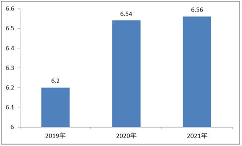 图表:2019-2021年中国手游市场用户规模(单位:亿人)