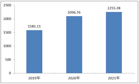 图表:2019-2021年中国手游市场规模(单位:亿元)