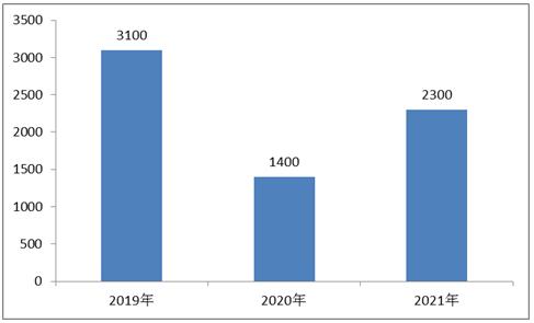图表:2019-2021年中国热泵进口量(单位:台)