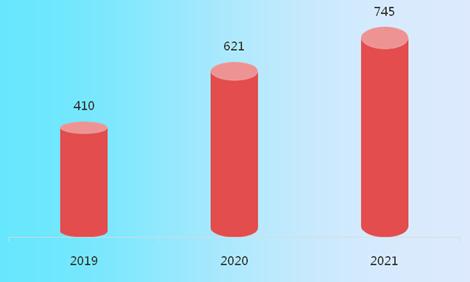 图表:2019-2021年中国无人零售自助终端设备总产值(亿元)