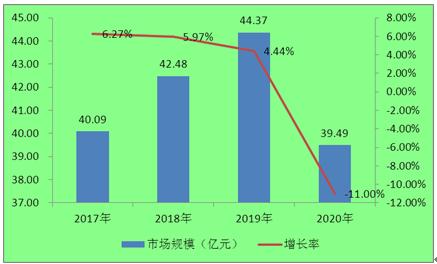 镍氢电池是早期的镍镉电池的替代产品,在电化学特性方面与镍镉电池基本相似,且释放能量强,不含有毒物质,可实现对镍镉电池的替代。尽管锂离子电池对镍氢电池又产生了比较大的替代效应,但镍氢电池凭借性能稳定、工艺成熟的优势,客户在某些领域如安防和医疗等行业依然喜欢应用镍氢电池,2019年行业市场规模约为44.37亿元,受疫情影响,预计到2020年行业市场规模略有下降,为39.49亿元。