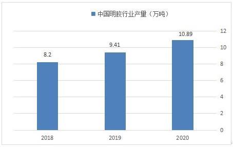 2018-2020年中国明胶行业供给规模呈现逐年上升的趋势,2020年供给规模达10.89万吨,主要因为生产工艺的改进及新进入企业的增加,推动产量的上涨。