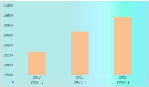 2019-2021年中国规模以上白酒行业资产由13267.2亿元上升到13965.4亿元。