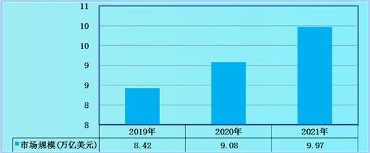 图表:2019-2021年全球电子信息制造业市场规模