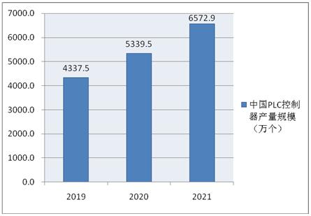 图表:2019-2021年中国PLC控制器产量规模(单位:万个)