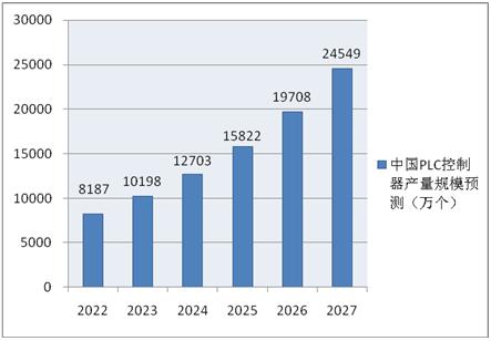 图表:2022-2027年中国PLC控制器行业供给规模预测(单位:万件)