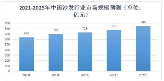 图表:2021-2025年中国沙发行业市场规模预测