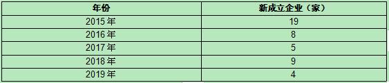 图表:2015-2019年中国挖掘机行业新成立企业情况(注册资本5000万元以上)