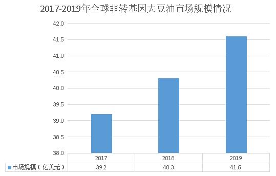图表:2017-2019年全球非转基因大豆油市场规模情况