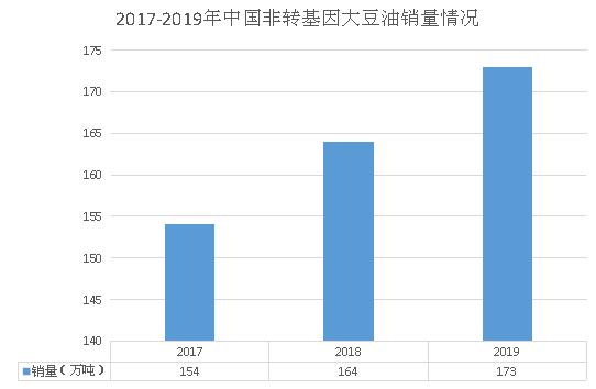 图表:2017-2019年中国非转基因大豆油销量情况