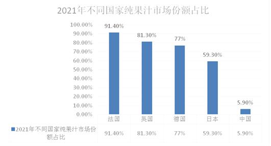 图表:2021年不同国家纯果汁市场份额占比情况