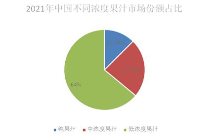 图表:2021年中国不同浓度果汁市场份额占比情况