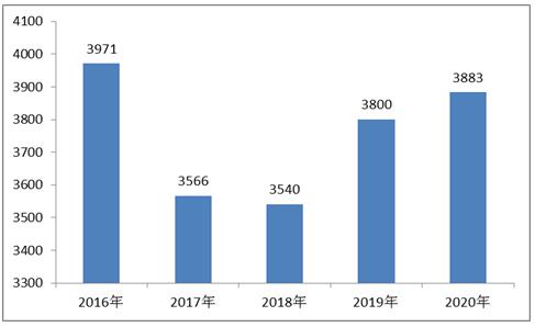 图表:2016-2020年全球婴幼儿配方奶粉产量(单位:千吨)