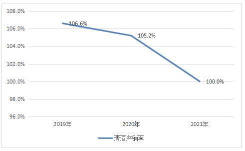 图表:2019-2021年中国清酒行业产销率