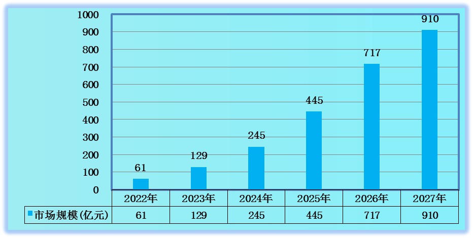 图表:2022-2027年硅碳负极材料行业市场规模预测