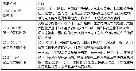 我国特高压经历了四个发展阶段。2006年8月19日,中国首个特高压示范工程奠基。但在推动特高压工程之初,国内对于是否进行大规模特高压工程争论较为激烈,争论点主要在是否利于电力市场改革、工程技术存在质疑。但是中国幅员辽阔人口众多,特高压发展是必须要攻下的战略高地。发展才是硬道理,不畏艰险,迎难而上,中国特高压科学家和工程师也从被动求索西方受制于人,到锐意创新,技术领先。