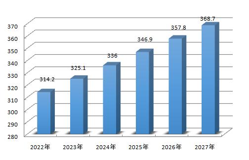 图表:2022-2027年我国铝箔产量预测分析(单位:万吨)