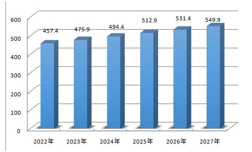 图表:2022-2027年我国铝箔需求预测分析(单位:万吨)