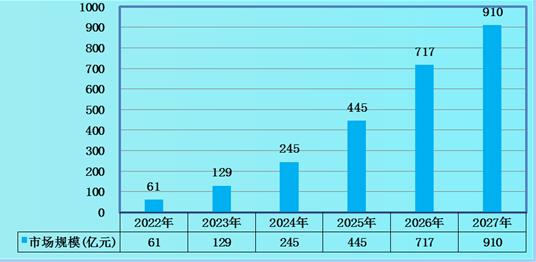 图表:2022-2027年硅碳负极材料行业市场规模预测