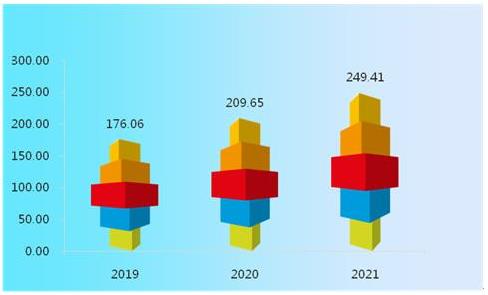 图表:2019-2021年中国服务器市场需求规模(亿美元)