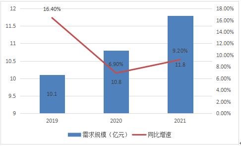 近些年来,我国民营儿科医院服务在入院人次及客户单价方面呈现出双向齐升的局面,2019年我国民营儿科医院需求规模为10.1亿元,行业发展至2021年,需求规模增长至为11.8亿元,较2020年增长了11.8%。