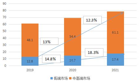 图表:2019-2021年我国民营综合医院行业市场规模(单位,亿元)