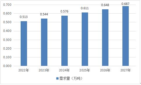 图表:2022-2027年中国真空吸盘挂钩行业需求规模预测(万吨)