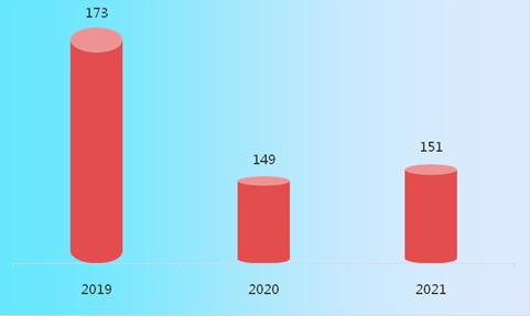 图表:2019-2021年我国展览馆场馆数量(座)