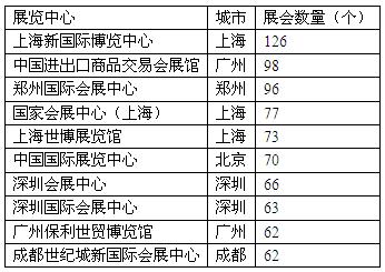 从举办数量在30个以上的展览馆来看,上海新国际博览中心展会数量最多,在126个,其次是中国进出口商品交易会展馆,展会数量为98个,从企业分布来看,发展情况较好的展览馆,主要分布在北上广深等地。