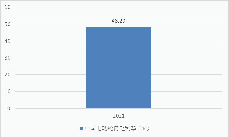 2021年的电动轮椅的毛利率是48%。疫情并没有伤害到电动轮椅的毛利率运行情况。医院老人数量增加导致对于轮椅的需求并没有下降。