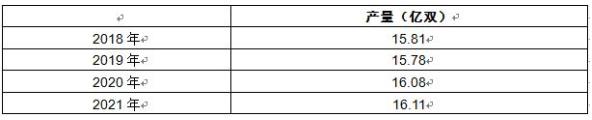 目前,中国有14亿人口,巨大的消费基础是行业发展的保证,因此,中国拖鞋领域不论是消费还是生产,目前都正处于稳中带上的情况。预计到2021年年底,产量达到16.11亿双。