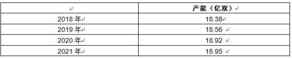 图表:2018-2021年拖鞋行业产能